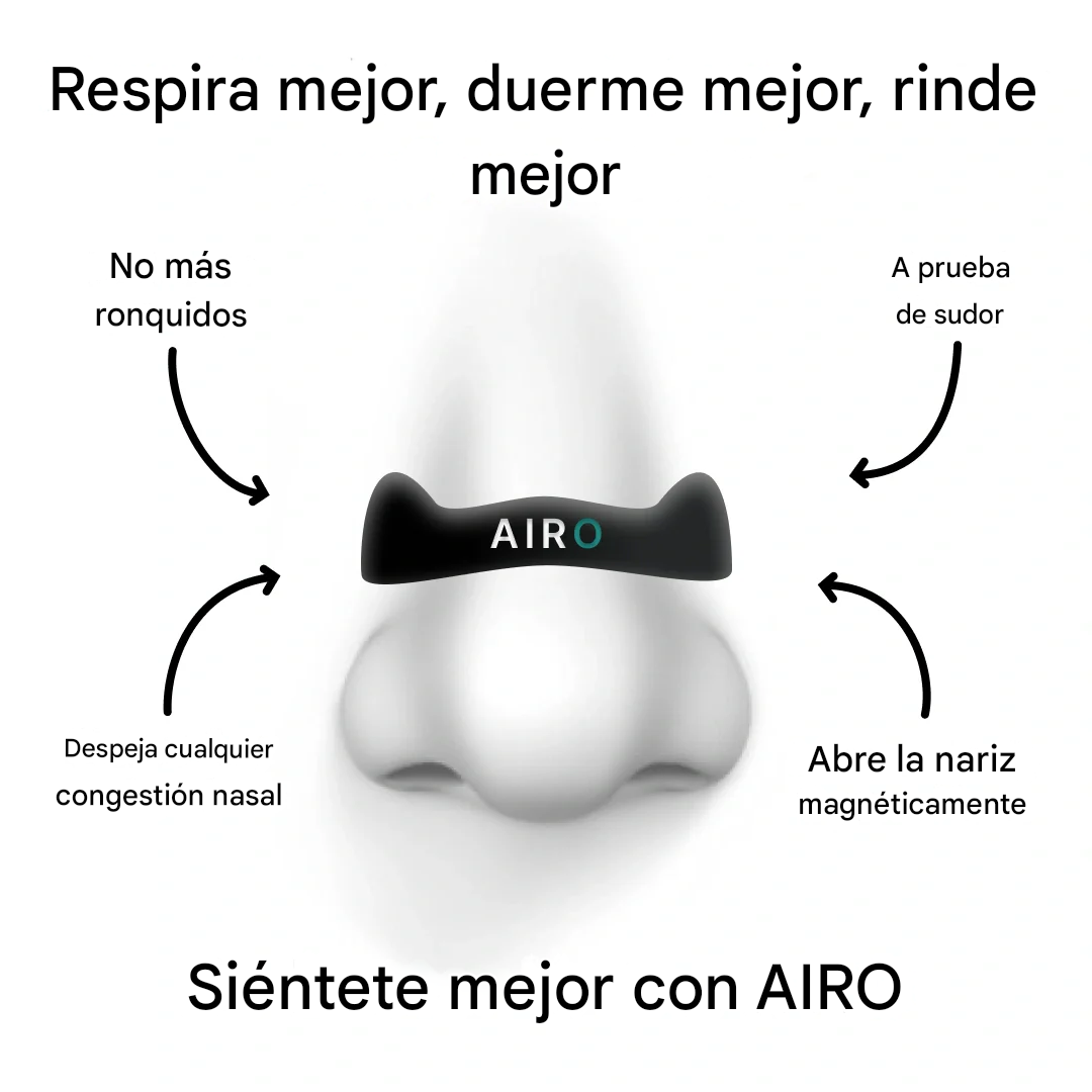 El sistema magnético de Airo abre físicamente los conductos nasales y aumenta la entrada de oxígeno para lograr un flujo de aire sin obstrucciones y una salud óptima.